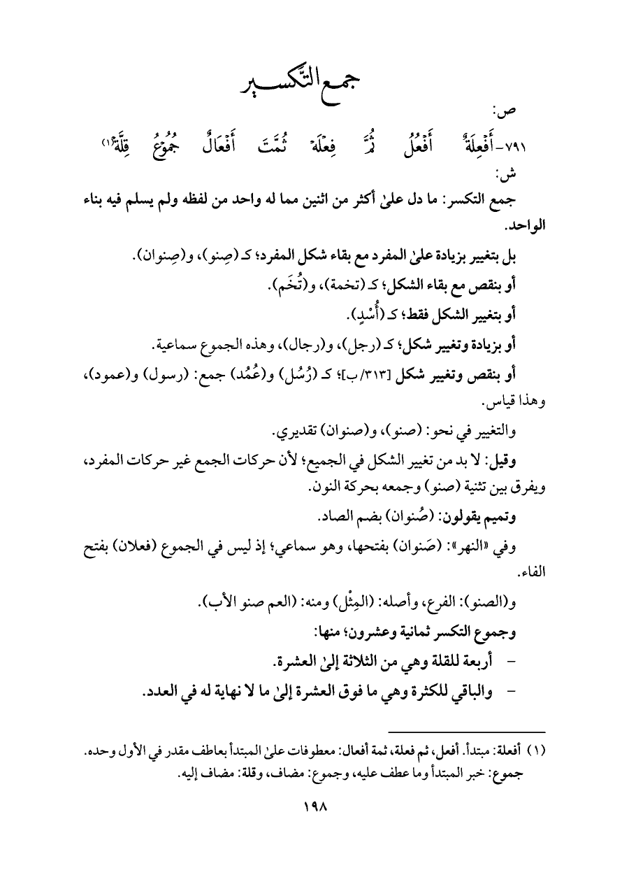 (¬١) أفعلة: مبتدأ. أفعل، ثم فعلة، ثمة أفعال: معطوفات على المبتدأ بعاطف مقدر في الأول وحده. جموع: خبر المبتدأ وما عطف عليه، وجموع: مضاف، وقلة: مضاف إليه.