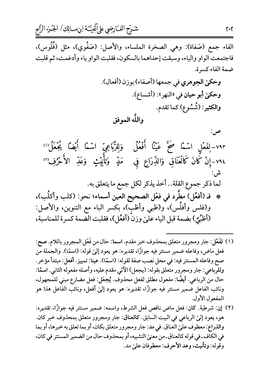 كتاب شرح الفارضي على ألفية ابن مالك (اسم الجزء: 4)