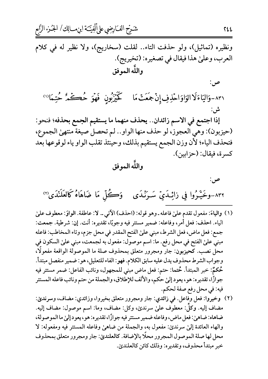 كتاب شرح الفارضي على ألفية ابن مالك (اسم الجزء: 4)