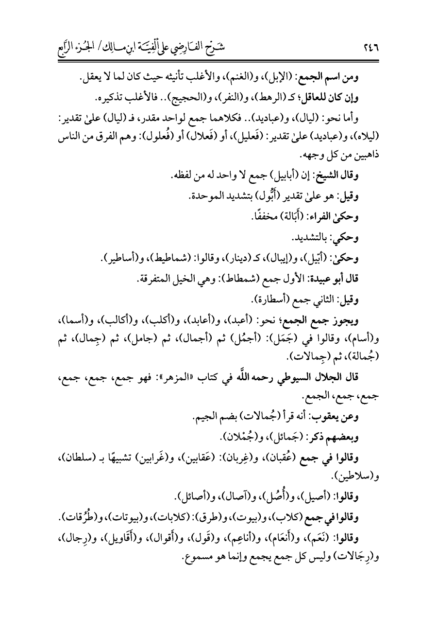 قال الجلال السيوطي رحمه اللَّه في كتاب "المزهر": فهو جمع، جمع، جمع، جمع، جمع، الجمع.