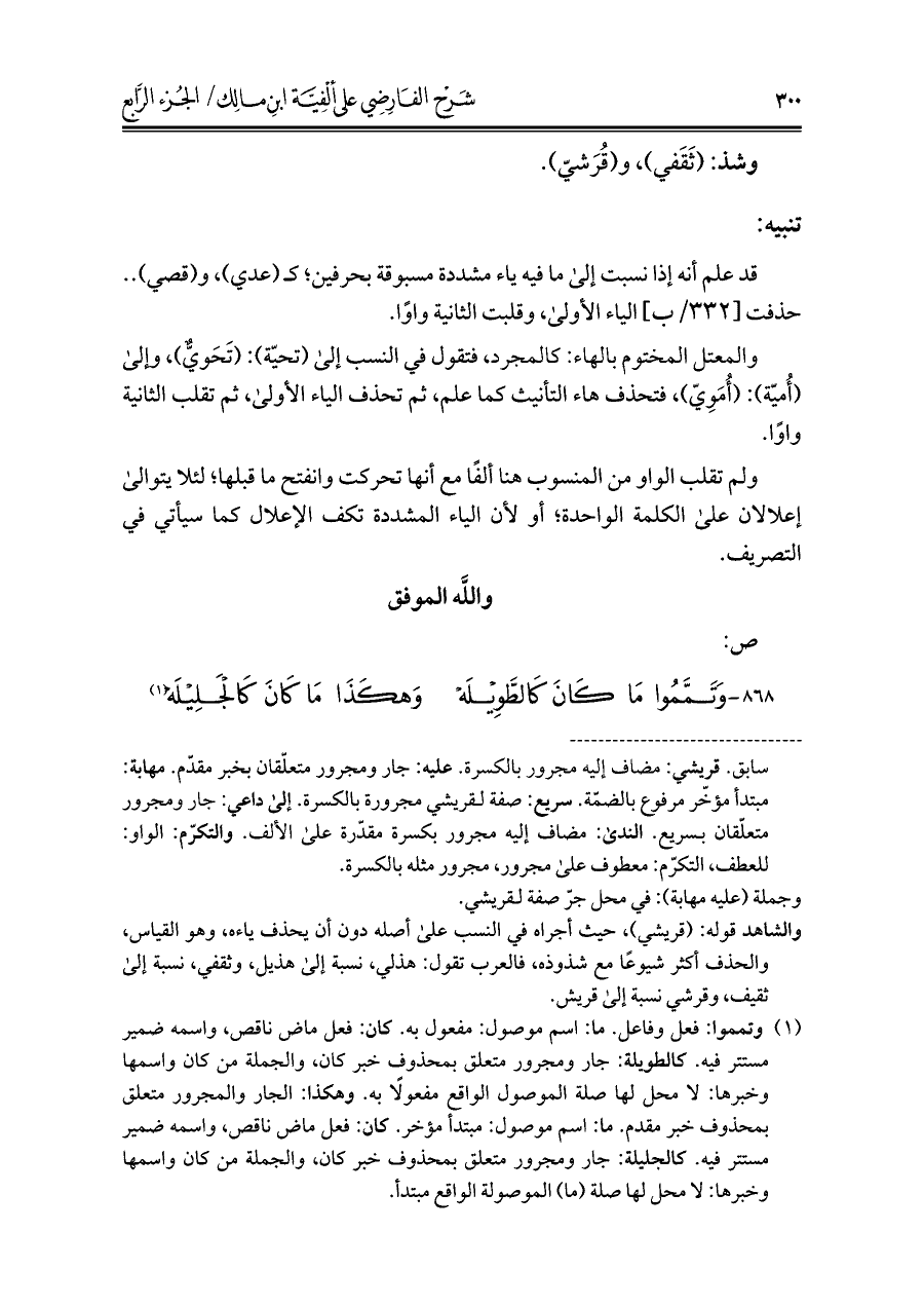 كتاب شرح الفارضي على ألفية ابن مالك (اسم الجزء: 4)