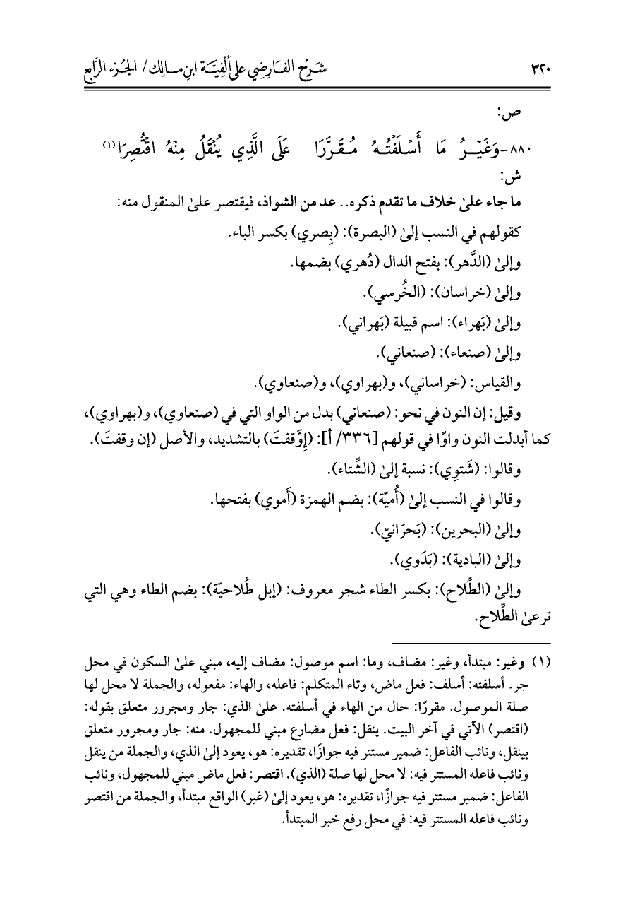 كتاب شرح الفارضي على ألفية ابن مالك (اسم الجزء: 4)