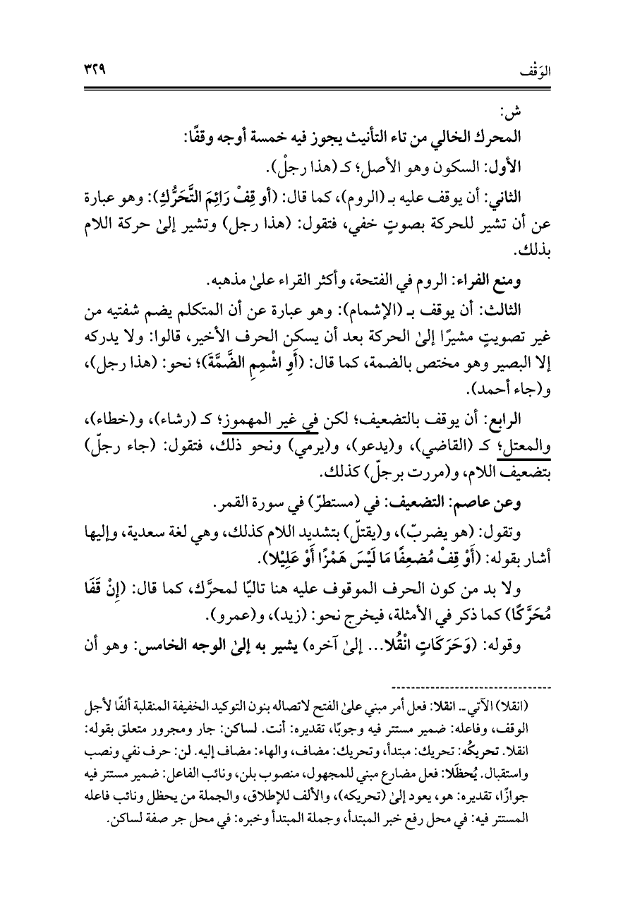 المحرك الخالي من تاء التأنيث يجوز فيه خمسة أوجه وقفًا: