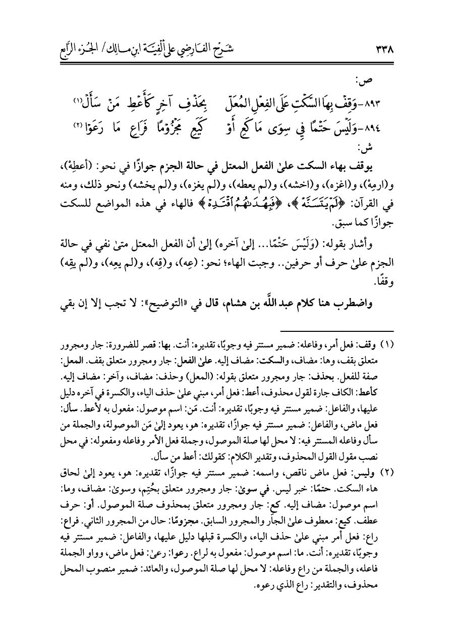 كتاب شرح الفارضي على ألفية ابن مالك (اسم الجزء: 4)