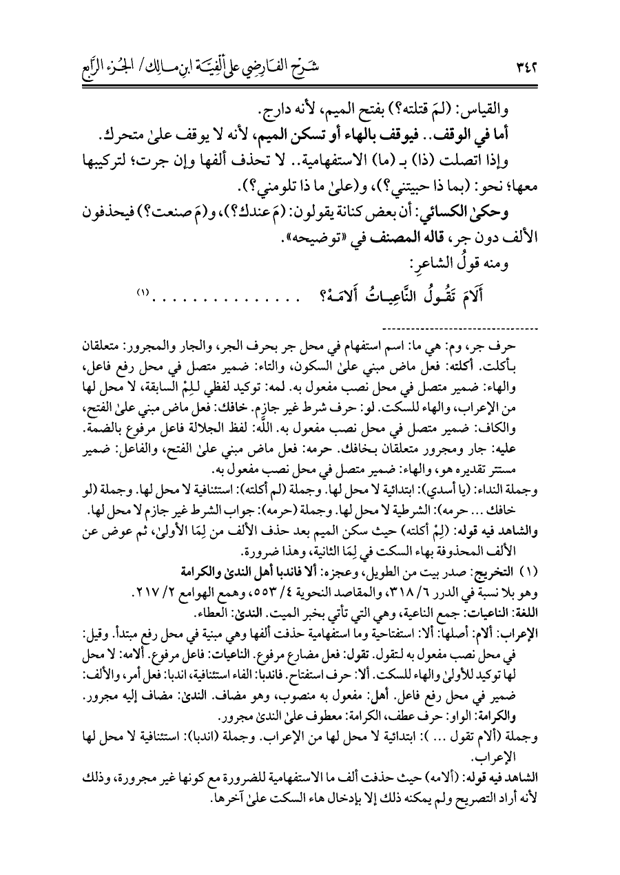 كتاب شرح الفارضي على ألفية ابن مالك (اسم الجزء: 4)