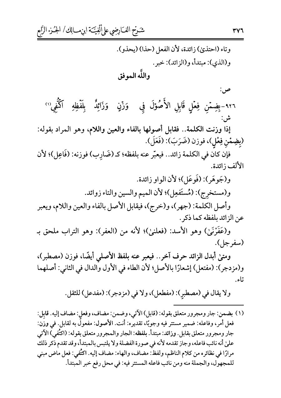 كتاب شرح الفارضي على ألفية ابن مالك (اسم الجزء: 4)