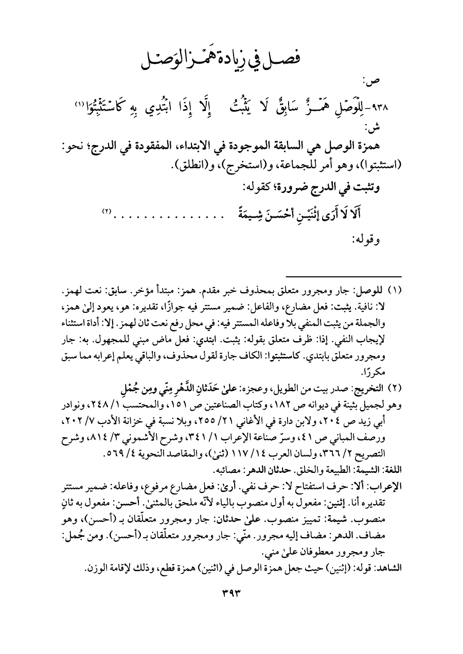 ٩٣٨ - لِلْوَصْلِ هَمْزٌ سَابِقٌ لَا يَثْبُتُ ... إِلَّا إِذَا ابْتُدِي بِهِ كَاسْتَثْبِتُوَا (¬١)