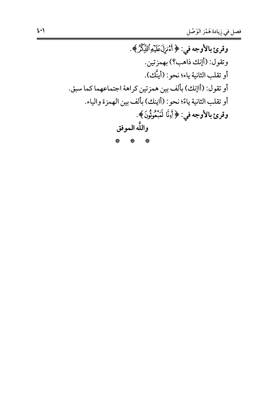 أو تقول: (أاإنك) بألف بين همزتين كراهة اجتماعهما كما سبق.