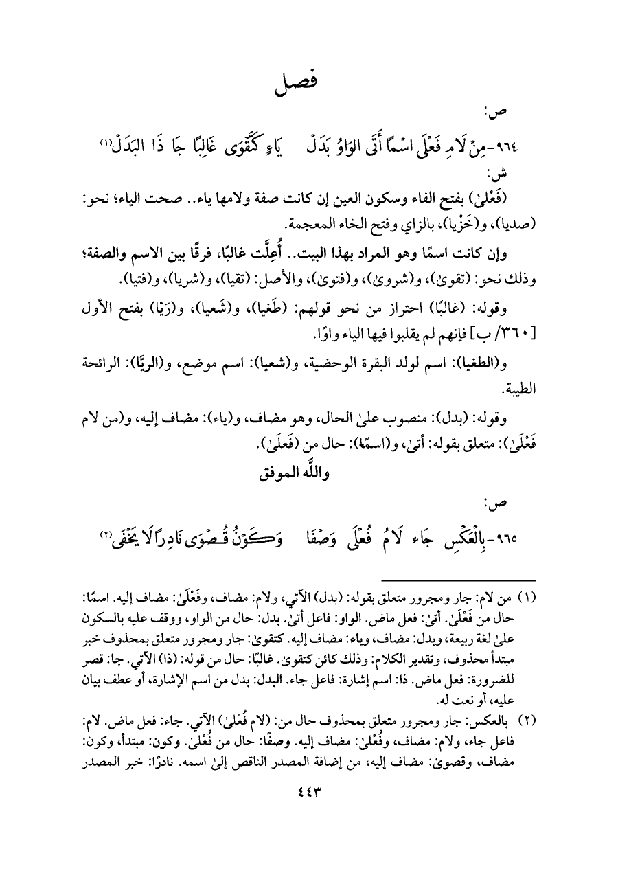 ٩٦٤ - مِنْ لَامِ فَعْلَى اسْمًا أَتَى الواوُ بَدَلْ ... يَاءٍ كَتَقْوَى غَالِبًا جَا ذَا البَدَلْ (¬١)