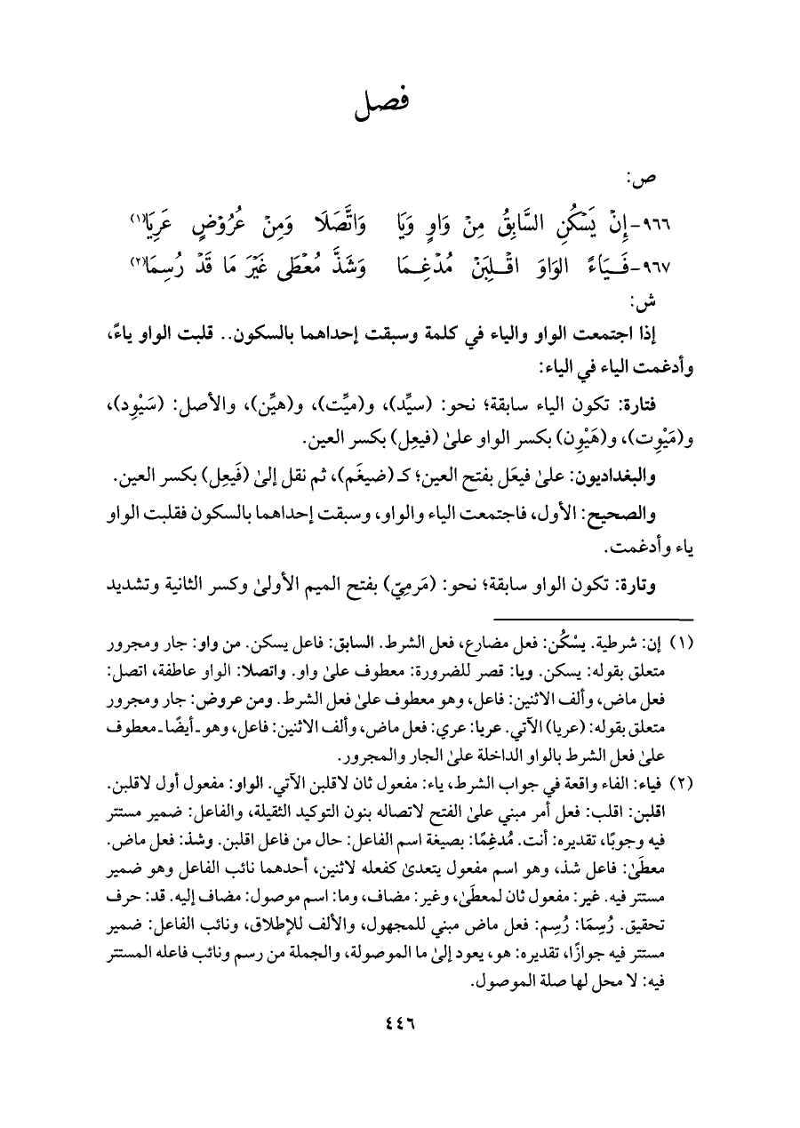 ٩٦٦ - إِنْ يَسْكُنِ السَّابِقُ مِنْ وَاوٍ وَيَا ... واتَّصَلَا وَمِنْ عُرُوْضٍ عَرِيَا (¬١)