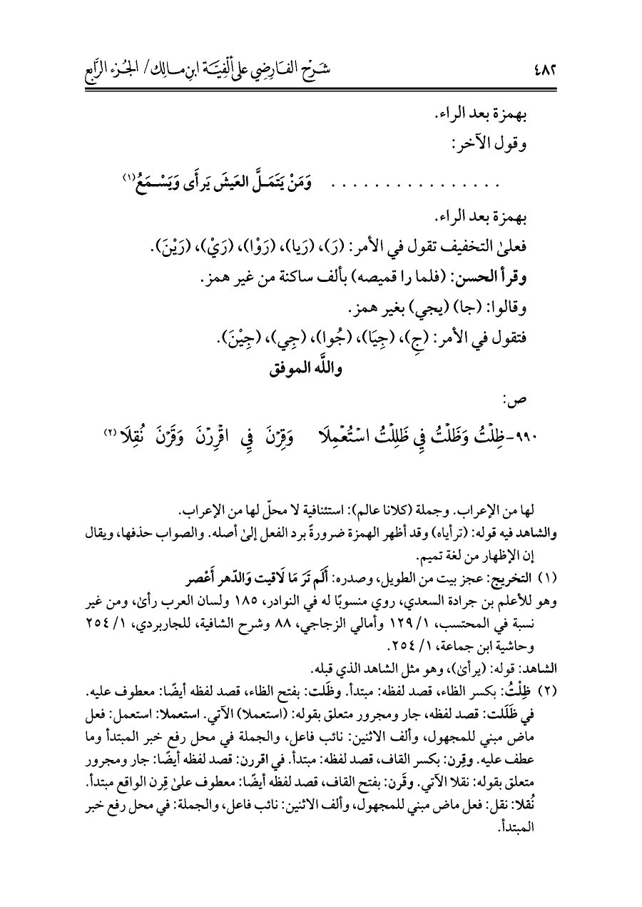 الشاهد: قوله: (يرأى)، وهو مثل الشاهد الذي قبله.