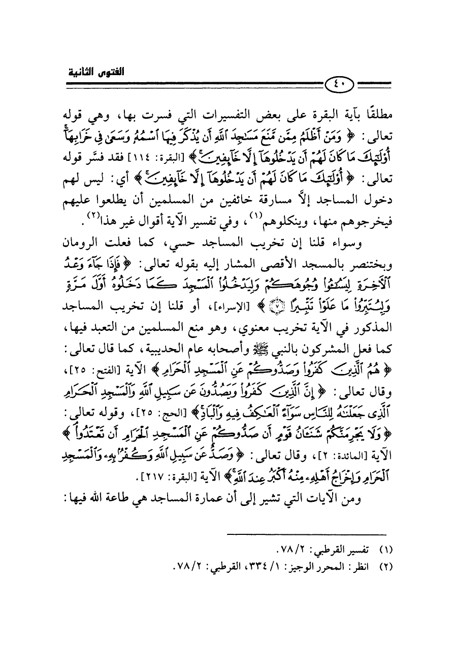 (¬٢) انظر: المحرر الوجيز: ١/ ٣٣٤، القرطبي: ٢/ ٧٨.