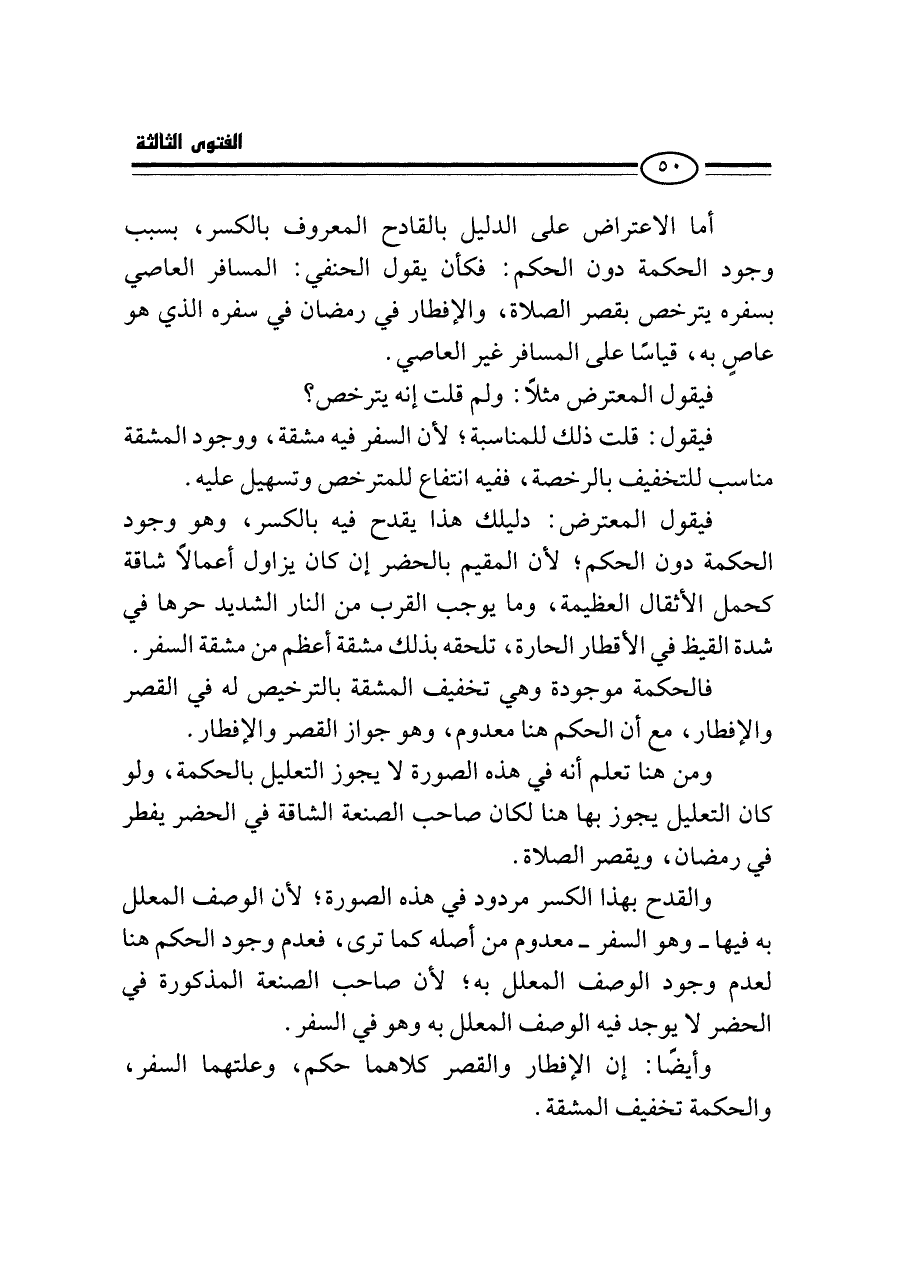فيقول المعترض مثلًا: ولم قلت إنه يترخص؟