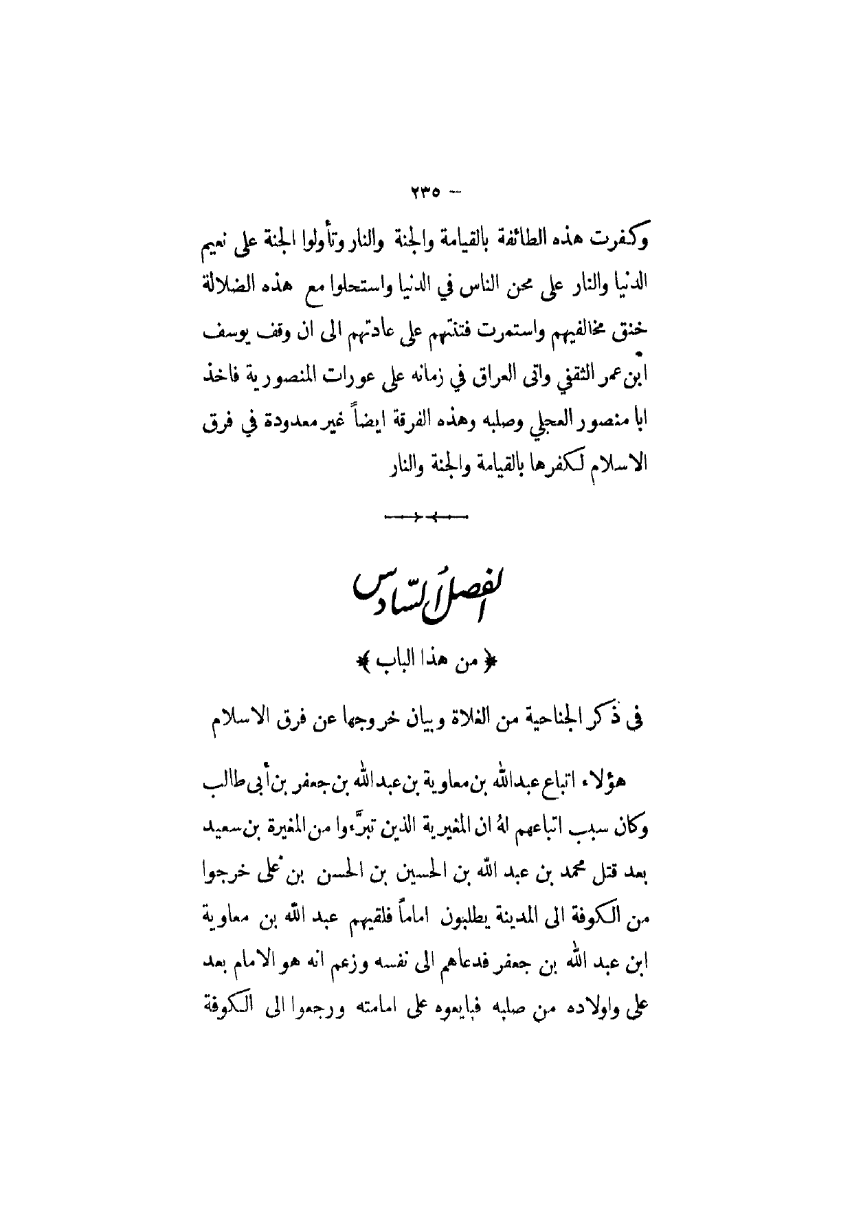 الْفَصْل السَّادِس من هَذَا الْبَاب فى ذكر الجناحية من الغلاة وَبَيَان خُرُوجهَا عَن فرق الاسلام
