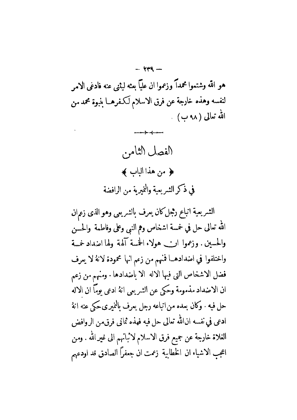 الْفَصْل الثَّامِن من هَذَا الْبَاب فِي ذكر الشريعية والنميرية من الرافضة