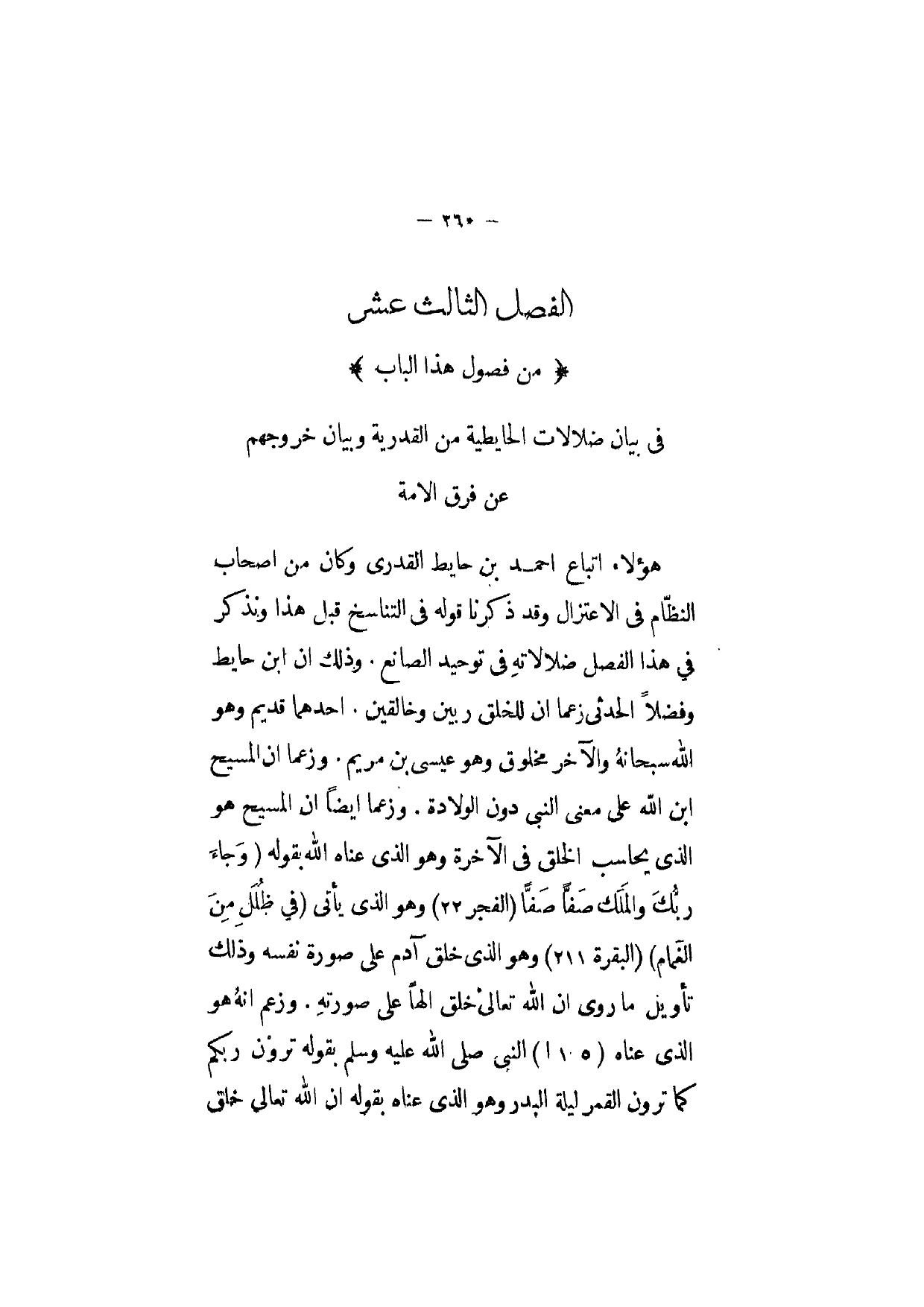 الْفَصْل الثَّالِث عشر من فُصُول هَذَا الْبَاب فى بَيَان ضلالات الحايطية من الْقَدَرِيَّة وَبَيَان خُرُوجهمْ عَن فرق الامة