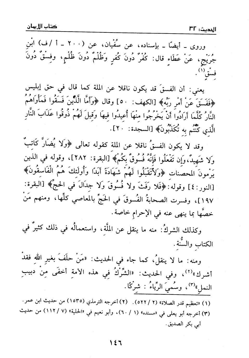 وقد لا يكون الفسق ناقلا عن الملة كقوله تعالى {وَلاَ يُضَآرَّ كَاتِبٌ وَلاَ شَهِيدٌ وَإِن تَفْعَلُواْ فَإِنَّهُ فُسُوقٌ بِكُمْ} [البقرة: 282] ، وقوله في الذين يرمون المحصنات {وَلا تَقْبَلُوا لَهُمْ شَهَادَةً أَبَدًا وَأُوْلَئِكَ هُمُ الْفَاسِقُونَ} [النور: 4] وقوله: {فَلاَ رَفَثَ وَلاَ فُسُوقَ وَلاَ جِدَالَ فِي الْحَج} [البقرة: 197] ، وفسرت الصحابة الفسوق في الحج بالمعاصي كلها، ومنهم من خصها بما ينهى عنه في الإحرام خاصة. وكذلك الشرك: منه ما ينقل عن الملة، واستعماله في ذلك كثير في الكتاب والسنة. ومنه: ما لا ينقل، كما جاء في الحديث: " من حلف بغير الله فقد أشرك " ِ (¬2) ، وفي الحديث: " الشرك في هذه الأمة أخفى من دبيب النمل " (¬3) ، وسمي الرياء: شركا.