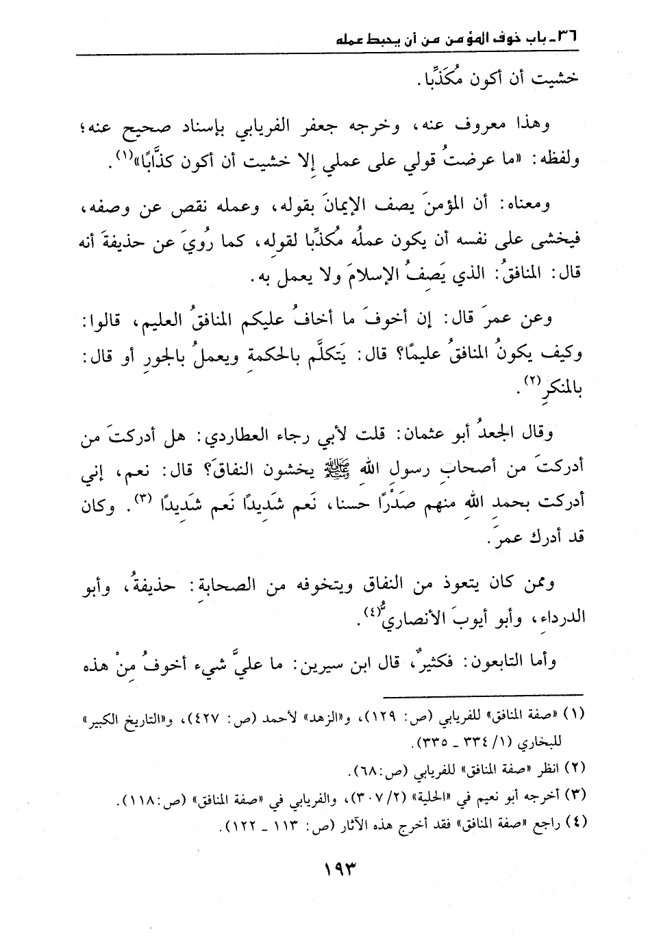 (¬1) " صفة المنافق " للفريابي (ص: 129) ، و" الزهد " لأحمد (ص: 427) ، و" التاريخ الكبير " للبخاري (1 / 334 - 335) .