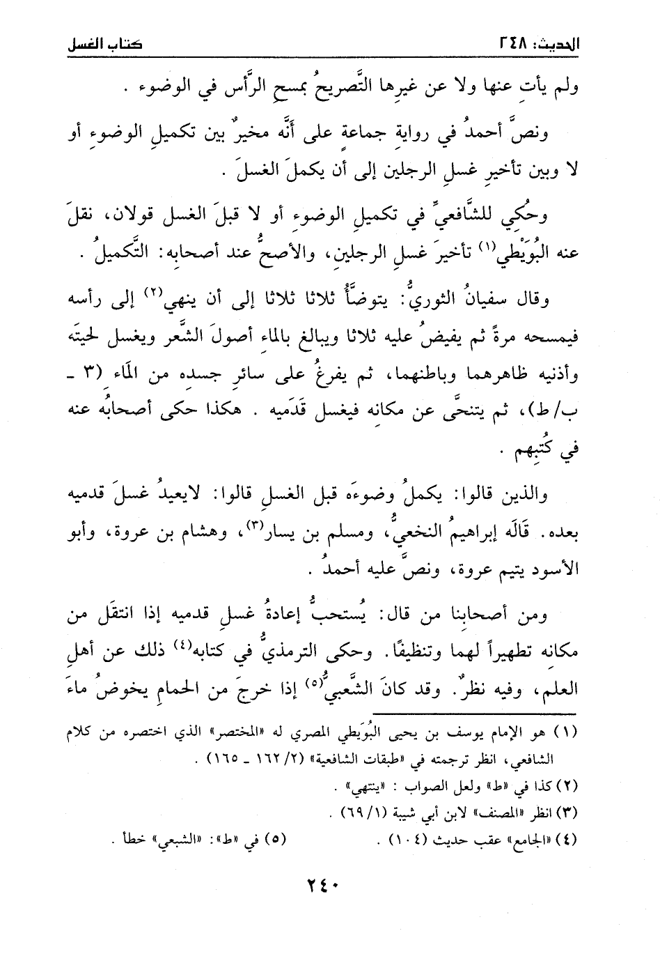 نقل عنه البويطي: تأخير غسل الرجلين.