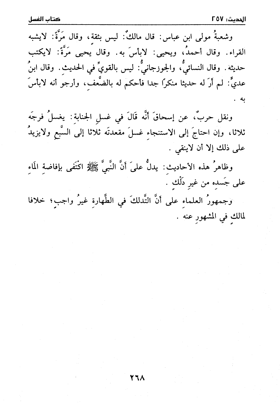 وظاهر هذه الأحاديث: يدل على أن النَّبيّ - صَلَّى اللهُ عَلَيْهِ وَسَلَّمَ - اكتفى بإفاضة الماء على جسده من غير ذَلِكَ.