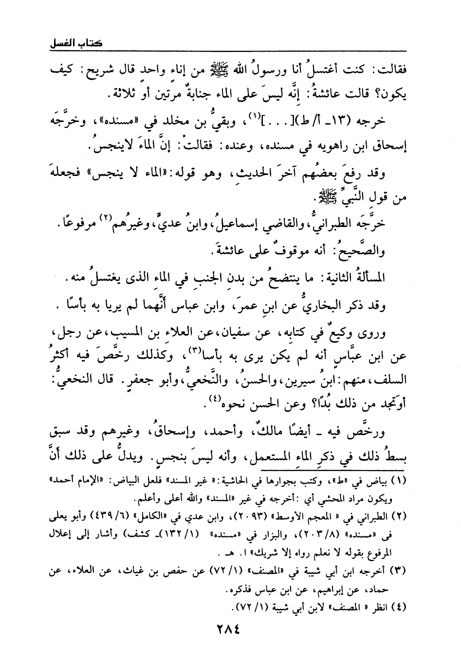وقد سبق بسط ذَلِكَ في ذكر الماء المستعمل، وأنه ليس بنجس.
