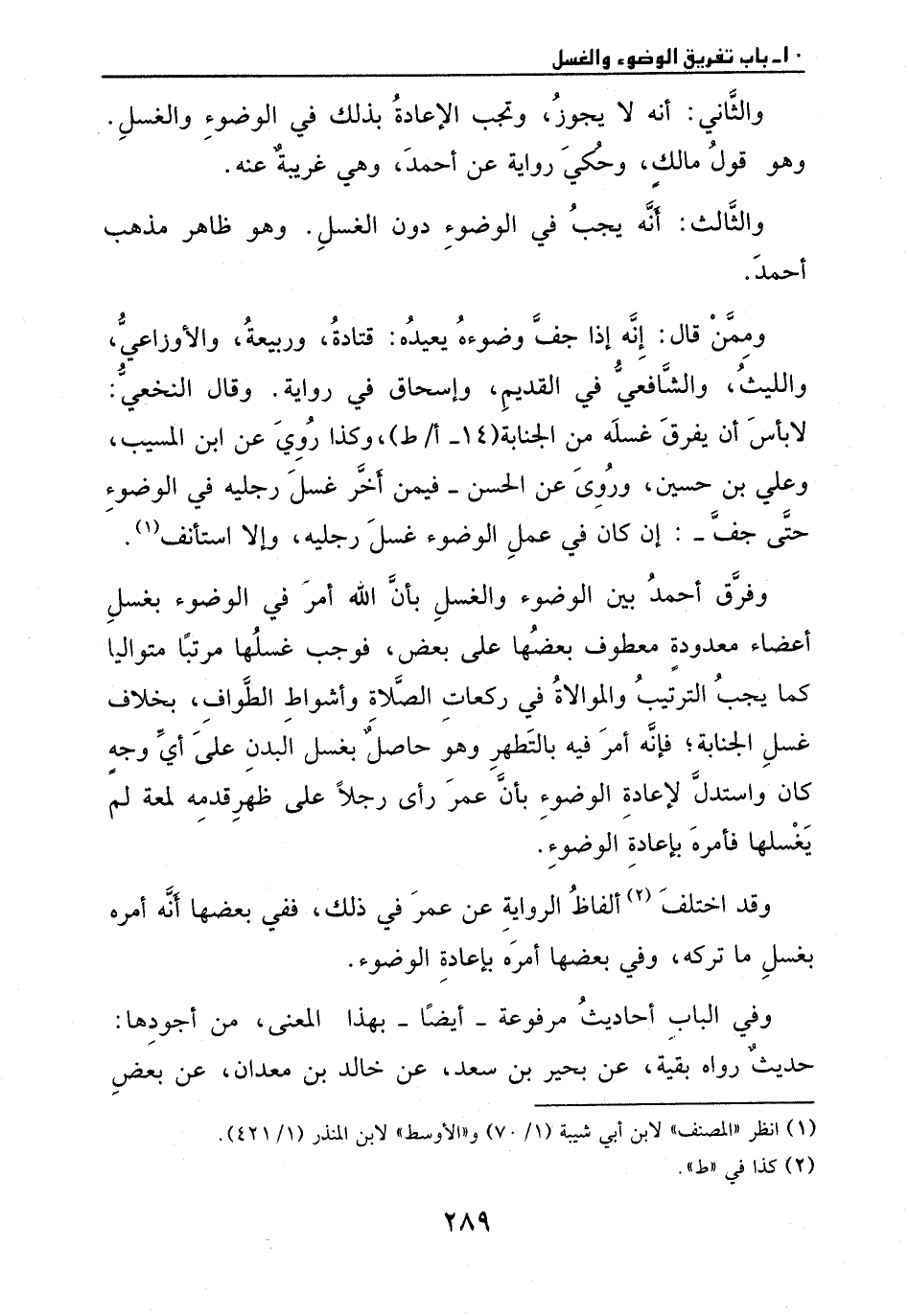 واستدل لإعادة الوضوء، بأن عمر رأى رجلاً على ظهر قدمه لمعة لم يغسلها، فأمره بإعادة الوضوء.