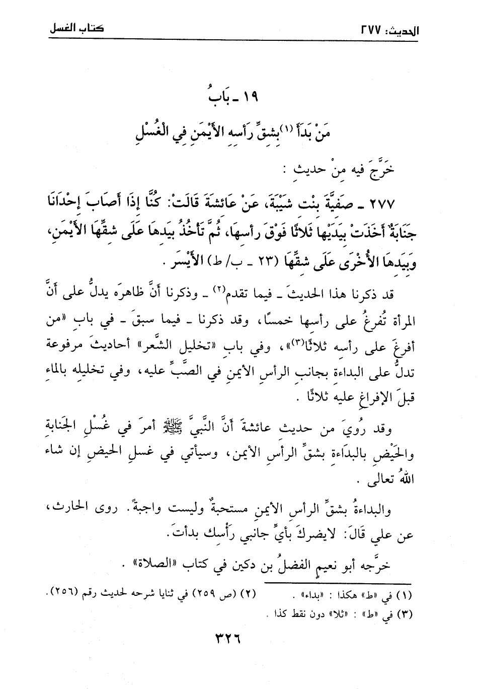 من بَدأ بِشِق رأسِهِ الأيمَنِ في الْغُسْلِ