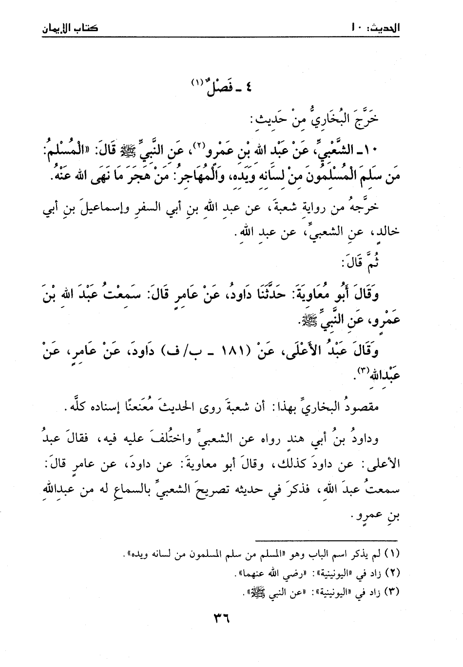 10 - الشعبي، عن عبد الله بن عمرو (¬1) عن النبي صلي الله عليه وسلم قال: " المسلم من سلم المسلمون من لسانه ويده، والمهاجر: من هجر ما نهى الله عنه "
