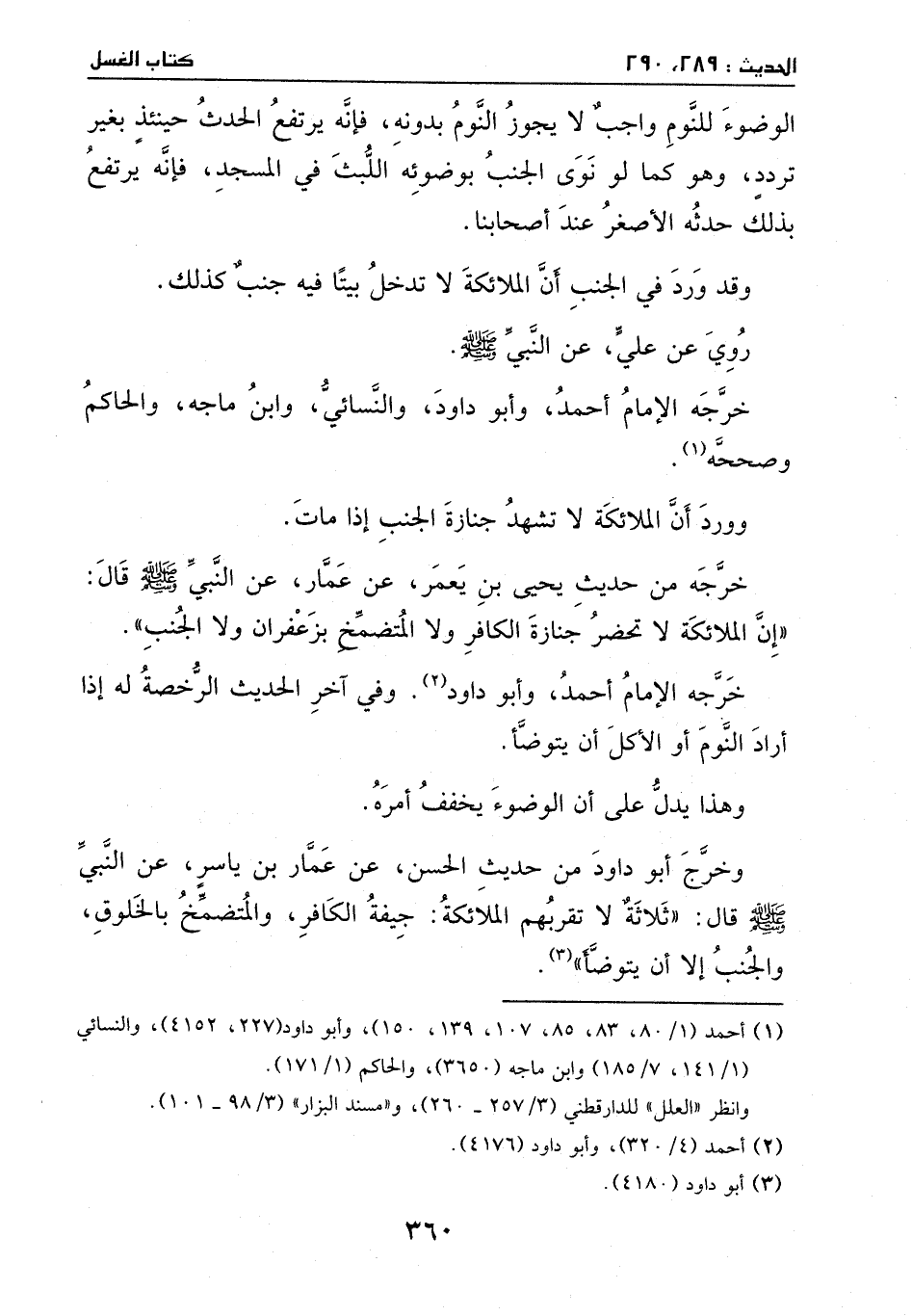 وقد ورد في الجنب: ((إن الملائكة لا تدخل بيتاً فيهِ جنب)) ، كذلك روي عَن علي، عَن النبي - صَلَّى اللهُ عَلَيْهِ وَسَلَّمَ -.