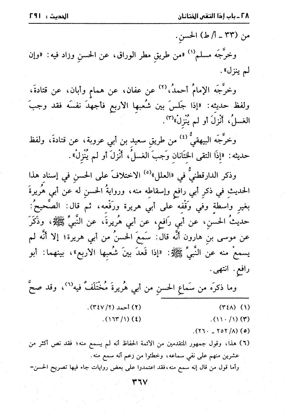 ذكر عَن موسى بنِ هارون، أنَّهُ قالَ: سمع الحسن مِن أبي هريرة، إلا أنَّهُ لَم يسمع منهُ عَن النبي - صَلَّى اللهُ عَلَيْهِ وَسَلَّمَ -: ((إذا قعد بين شعبها الأربع)) ، بينهما أبو رافع. انتهى.