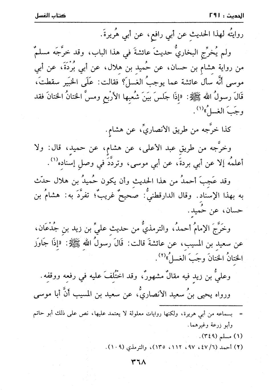 وخرج الإمام أحمد والترمذي مِن حديث علي بنِ زيد بنِ جدعان، عَن سعيد بنِ المسيب، عَن عائشة، قالت: قالَ رسول الله - صَلَّى اللهُ عَلَيْهِ وَسَلَّمَ -: ((إذا جاوز الختان الختان وجب الغسل)) .