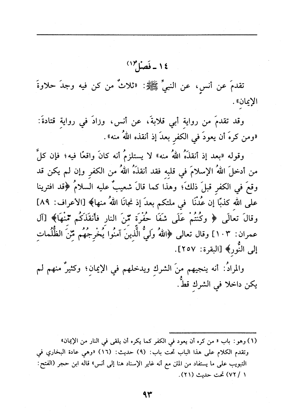 (¬1) وهو: باب " من كره أن يعود في الكفر كما يكره أن يقذف في النار من الإيمان " وتقدم الكلام على هذا الباب تحت باب: (9) حديث: (16) " وهي عادة البخاري في التبويب على ما يستفاد من المتن مع أنه غاير الإسناد هنا إلى أنس " قاله ابن حجر (الفتح: 1 / 72) تحت حديث (21) .
