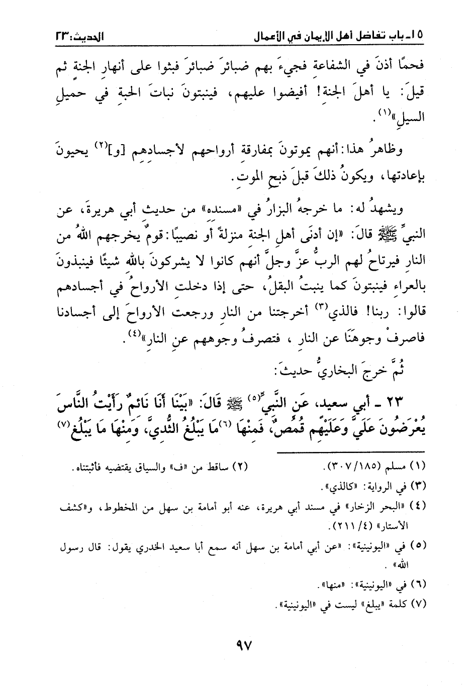 23 - أبي سعيد، عن النبي (¬1) صَلَّى اللهُ عَلَيْهِ وَسَلَّمَ قال: بينا أنا نائم رأيت الناس يعرضون علي وعليهم قمص، فمنها (¬2) ما يبلغ الثدي، ومنها مايبلغ (¬3)