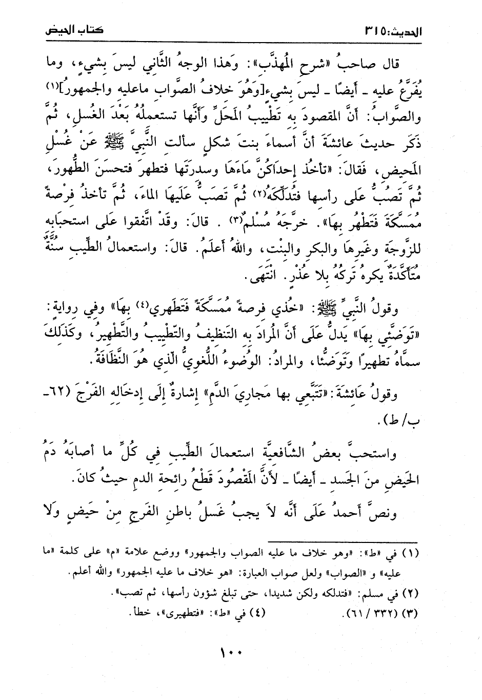 وقول النبي - صَلَّى اللهُ عَلَيْهِ وَسَلَّمَ -: ((خذي فرصة ممسكة فتطهري بها)) ، وفي رواية: ((توضئي