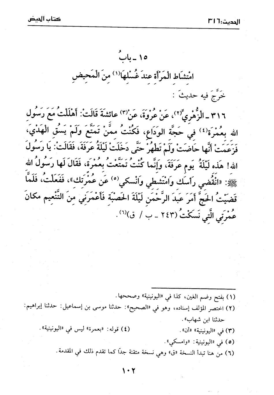 316 - حديث: الزهري، عَن عروة، عَن عائشة، قالت: أهللت معَ
