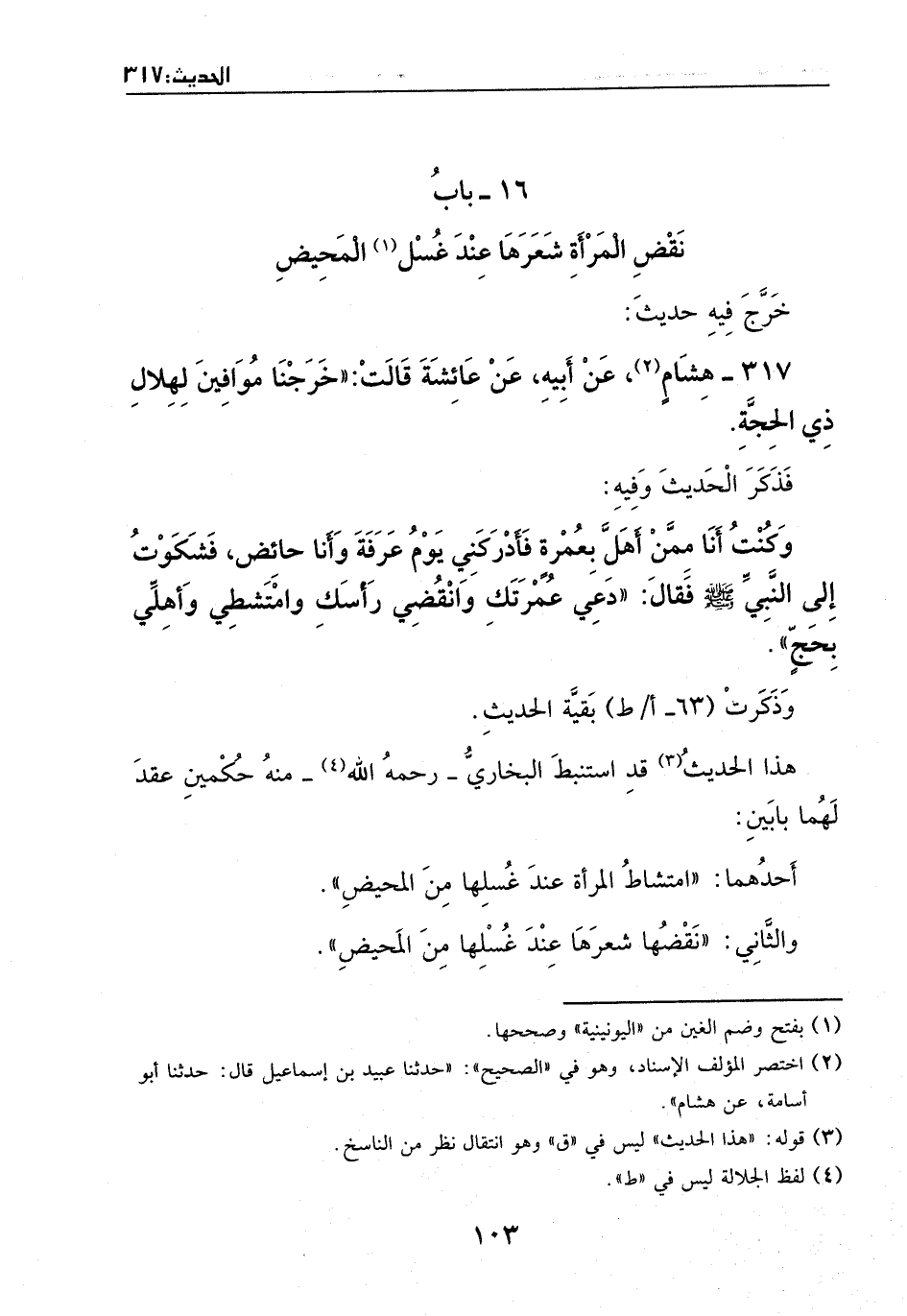 317 - حديث: هشام، عَن أبيه، عَن عائشة، قالت: خرجنا موافين لهلال ذي الحجة - فذكرت الحديث.