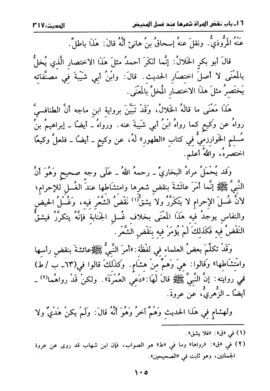 وقد تكلم بعض العلماء في لفظة: ((أمر النبي - صَلَّى اللهُ عَلَيْهِ وَسَلَّمَ - عائشة بنقص رأسها وامتشاطها)) ، وقالوا: هي وهم من هشام، وكذلك قالوا في روايته: أن النَّبيّ - صَلَّى اللهُ عَلَيْهِ وَسَلَّمَ - قَالَ لها: ((دعي العمرة)) .