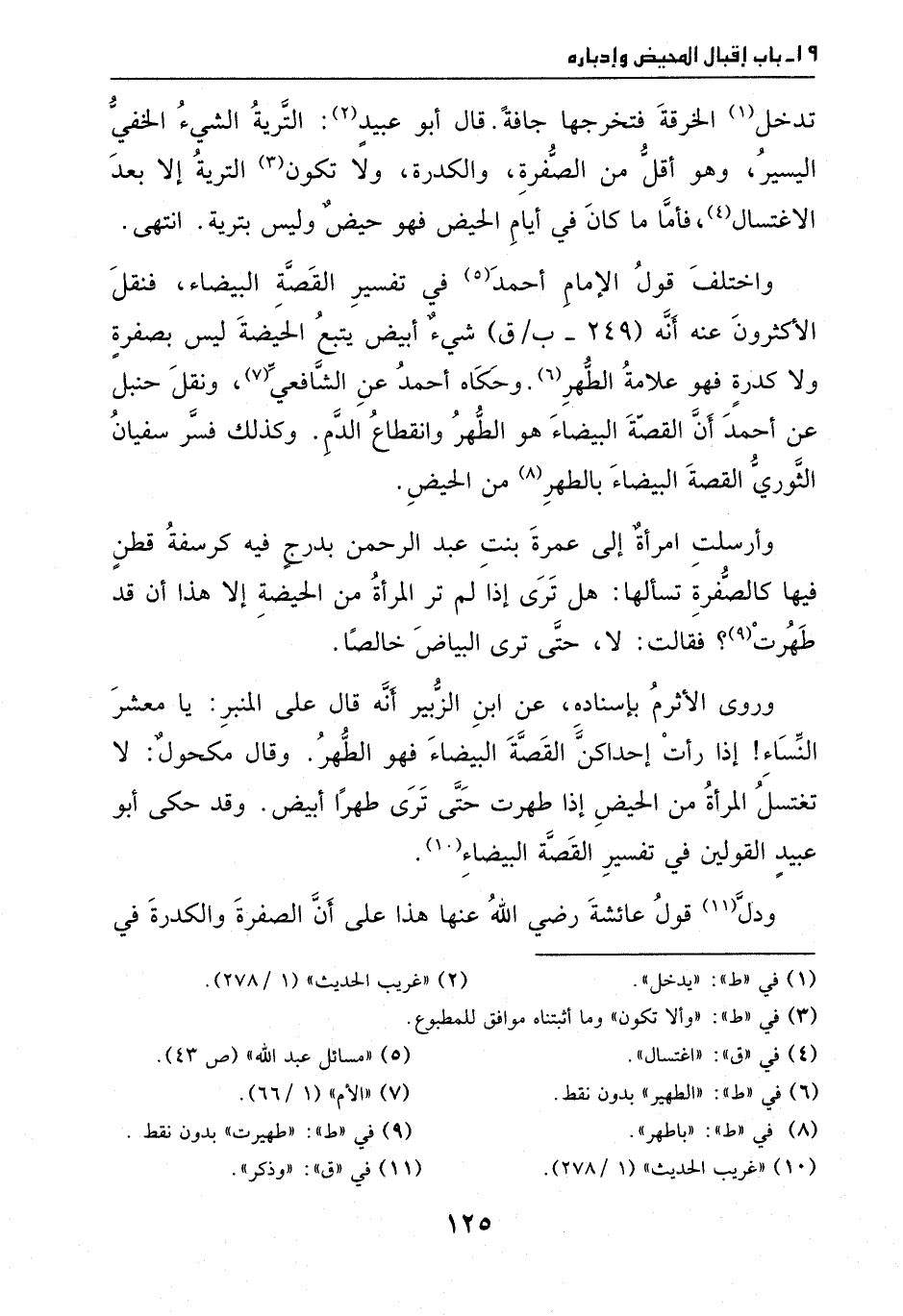 ونقل حنبل، عن أحمد: أن القصة البيضاء هو الطهر وانقطاع الدم، وكذلك فسر سفيان الثوري القصة البيضاء بالطهر من الحيض.