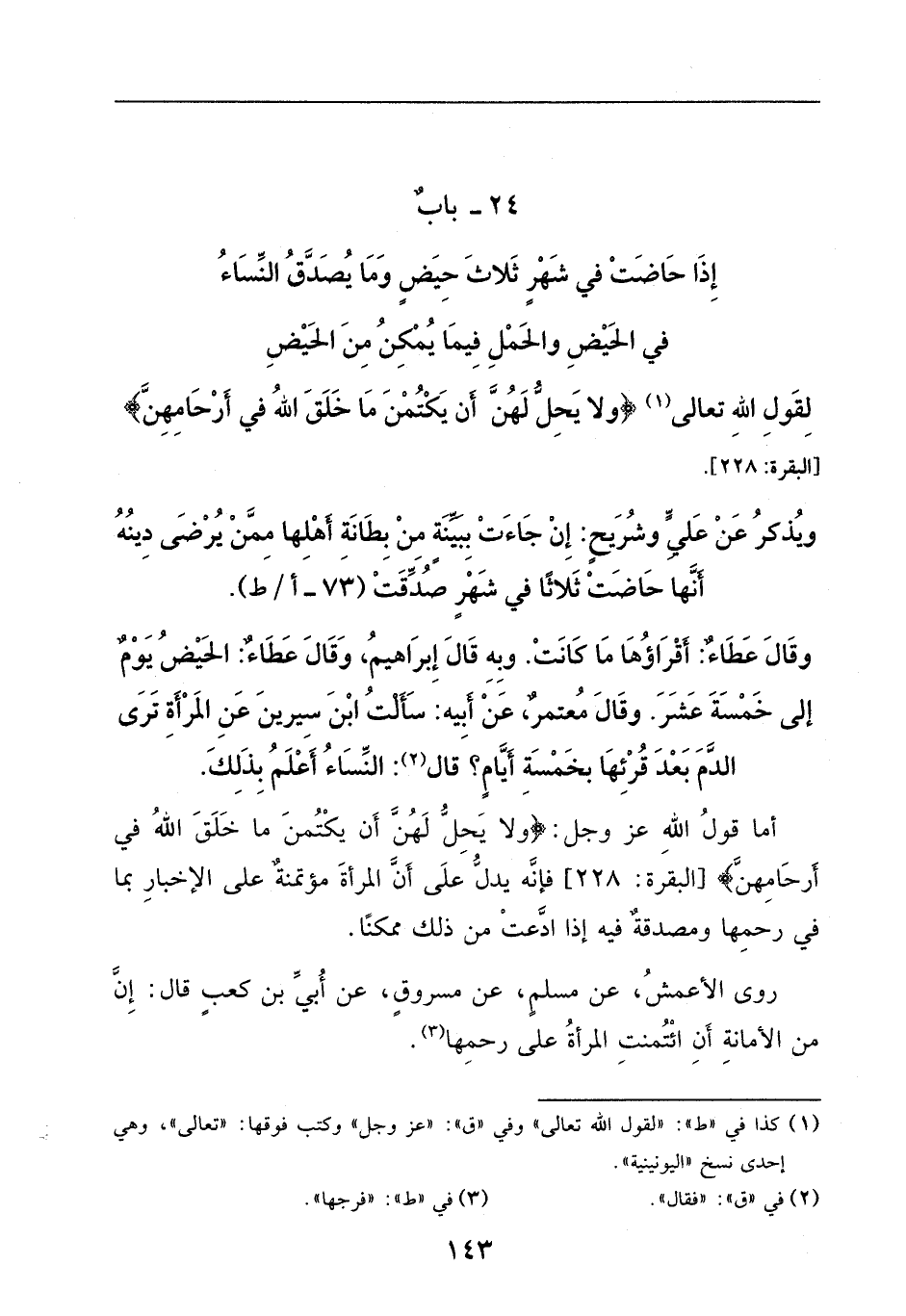 أمَّا قول الله - عز وجل -: {وَلا يَحِلُّ لَهُنَّ أَنْ يَكْتُمْنَ مَا خَلَقَ اللهُ فِي أَرْحَامِهِنّ}