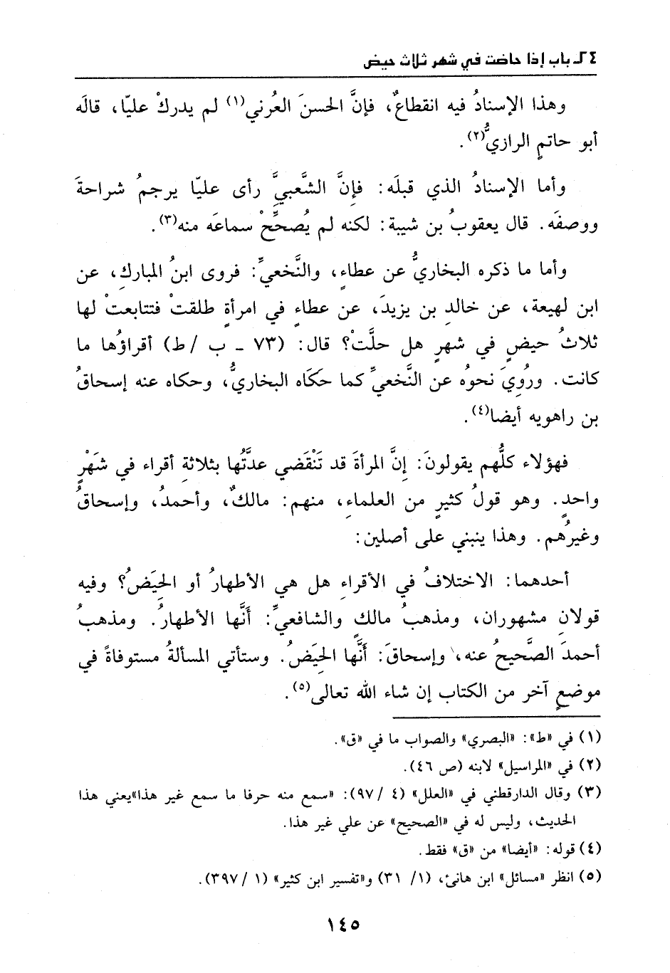 فهؤلاء كلهم يقولون: إن المرأة قَد تنقضي عدتها بثلاثة أقراء في شهر واحد، وَهوَ قول كثير مِن العلماء، مِنهُم: مالك، وأحمد، وإسحاق وغيرهم.