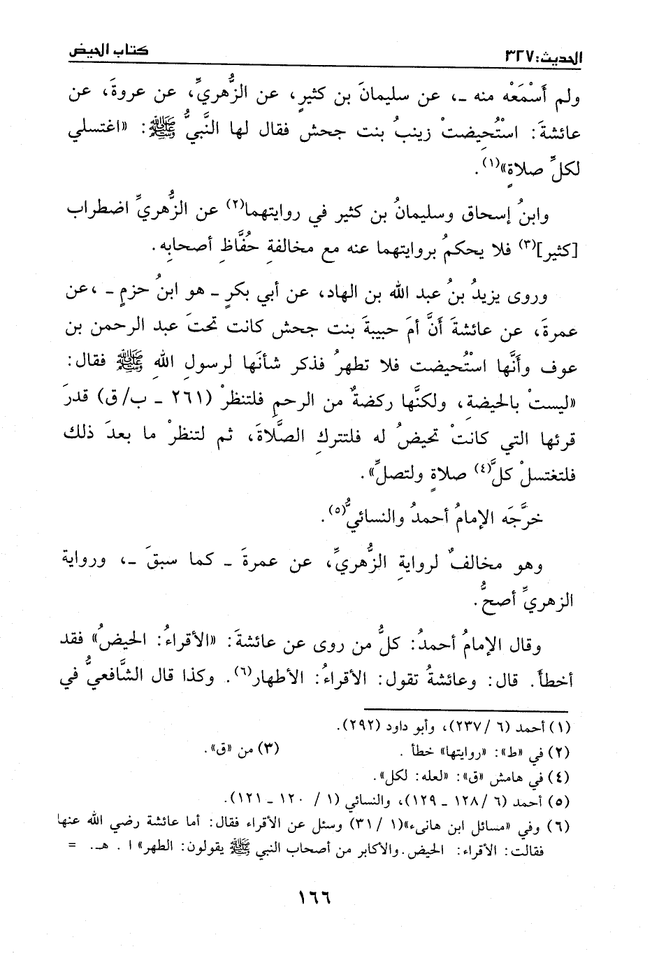 وقال الإمام أحمد: كل مِن روى عَن عائشة: الأقراء الحيض، فَقد أخطأ. قالَ: وعائشة تقول: الأقراء الأطهار.
