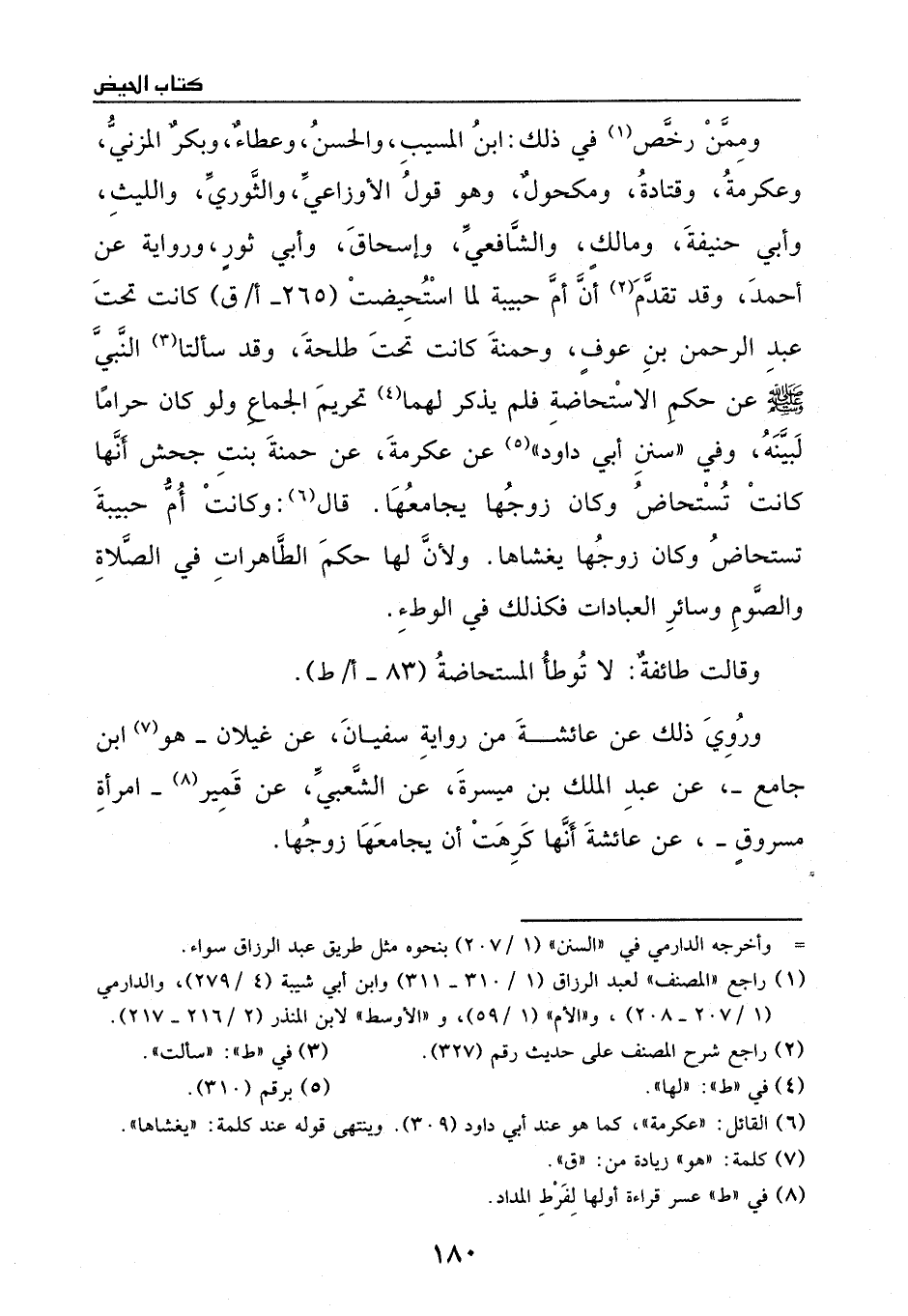 وفي ((سنن أبي داود)) عن عكرمة، عن حمنة بنت جحش، أنها كانت تستحاض وكان زوجها يجامعها. قالَ: وكانت أم حبيبة تستحاض وكان زوجها يغشاها؛ ولأن لها حكم الطاهرات في الصلاة والصوم وسائر العبادات، فكذلك في الوطء.