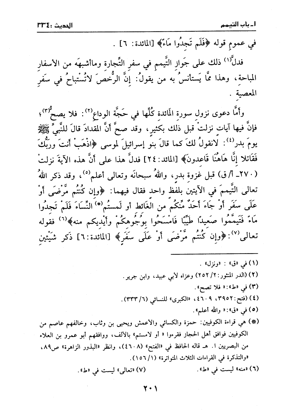 وقد ذكر الله تعالى التيمم في الآيتين بلفظ واحد، فقال فيهما: {وَإِنْ كُنْتُمْ مَرْضَى أَوْ عَلَى سَفَرٍ أَوْ جَاءَ أَحَدٌ مِنْكُمْ مِنَ الْغَائِطِ أَوْ لامَسْتُمُ النِّسَاءَ فَلَمْ تَجِدُوا مَاءً فَتَيَمَّمُوا صَعِيداً طَيِّباً فَامْسَحُوا بِوُجُوهِكُمْ وَأَيْدِيكُمْ} [المائدة:6] .