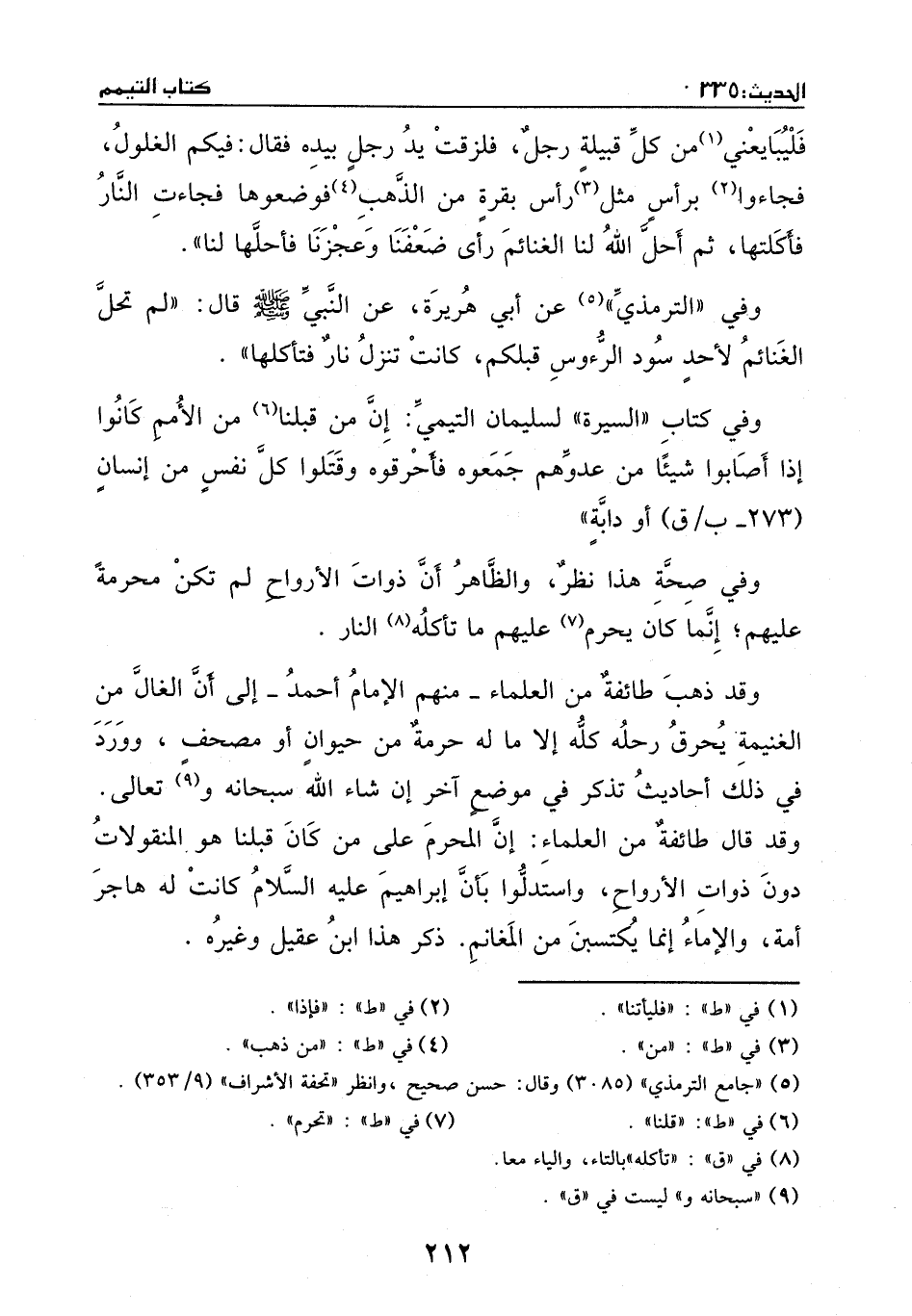 وفي كتاب ((السيرة)) لسليمان التيمي: أن من قبلنا من الأمم كانوا إذا أصابوا شيئا من عدوهم جمعوه فأحرقوه وقتلوا كل نفس من إنسان أو دابة.
