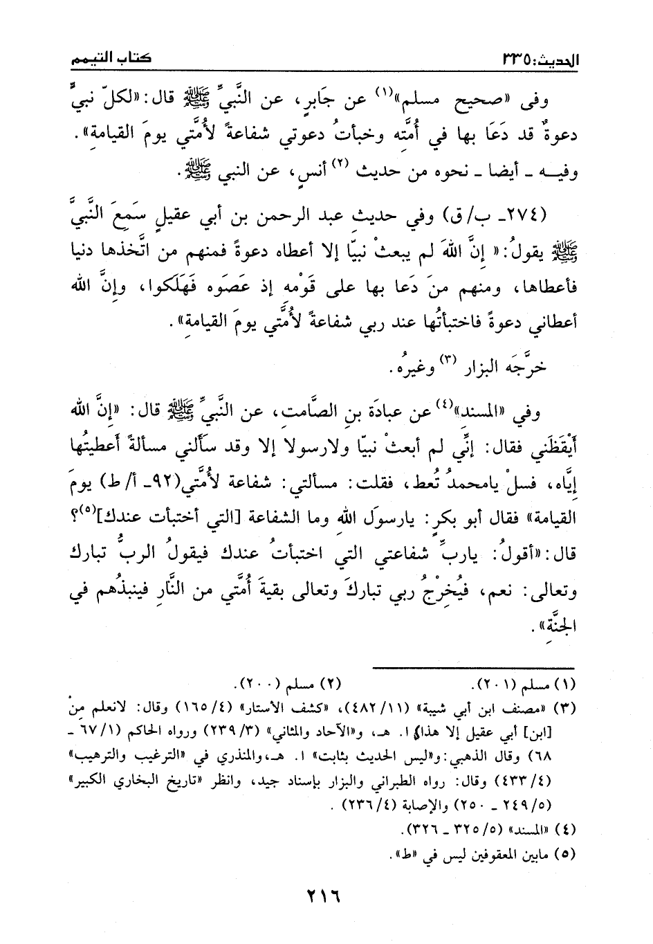 وفي ((صحيح مسلم)) عن جابر، عن النَّبيّ - صَلَّى اللهُ عَلَيْهِ وَسَلَّمَ -، قَالَ: ((لكل نبي دعوة قد دعا بها أمته، وخبأت دعوتي شفاعة لأمتي يوم القيامة)) .