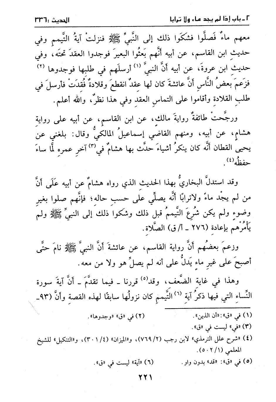 وزعم بعضهم: أن رواية القاسم، عن عائشة، أن النبي - صَلَّى اللهُ عَلَيْهِ وَسَلَّمَ - نام حتى أصبح على غير ماء يدل على أنه لم يصل هو ولا من معه، وهذا في غاية الضعف.