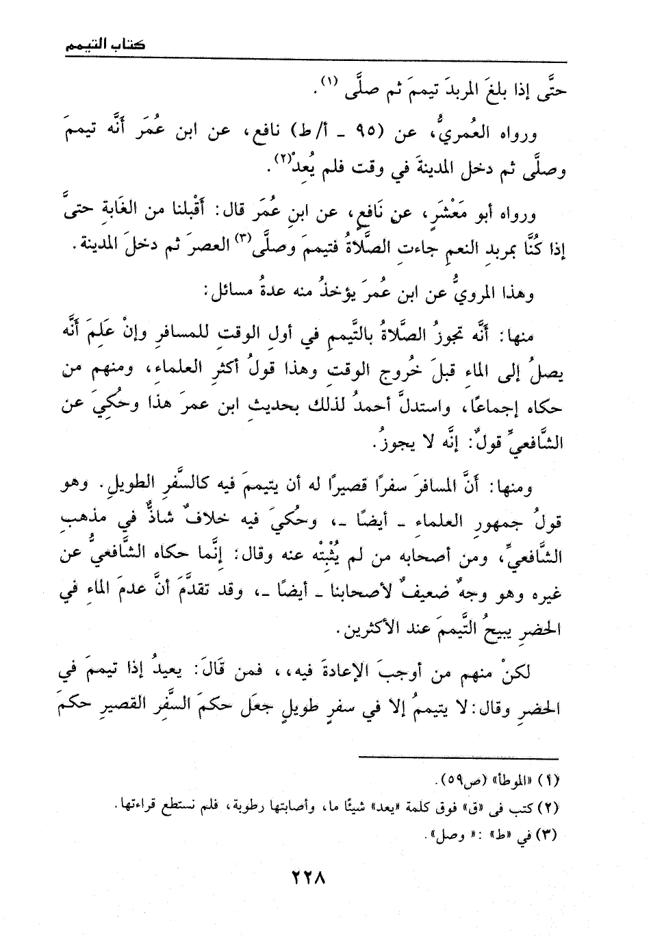 ورواه العمري، عن نافع، عن ابن عمر، أنه تيمم وصلى ثم دخل المدينة في وقت، فلم يعد، ورواه أبو معشر، عن نافع، عن ابن عمر، قَالَ: اقبلنا من الغابة، حتى إذا كنا بمربد النعم جاءت الصلاة، فتيمم، وصلى العصر، ثم دخل المدينة.
