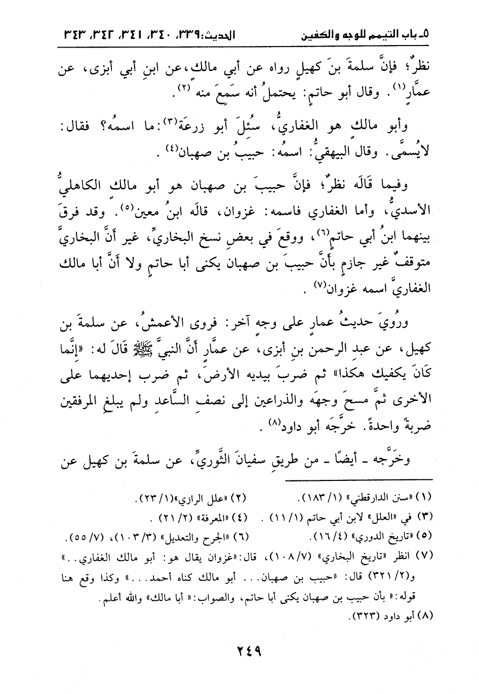 وفيما قاله نظر؛ فإن حبيب بن صهبان هو: أبو مالك الكاهلي الأسدي، وأم الغفاري فأسمه: غزوان -: قاله ابن معين. وقد فرق بينهما ابن أبي حاتم، ووقع في بعض نسخ البخاري، غير أن البخاري متوقف غير جازم لان حبيب بن صهبان يكنى: أبا حاتم، ولا أن أبا مالك الغفاري اسمه: غزوان.
