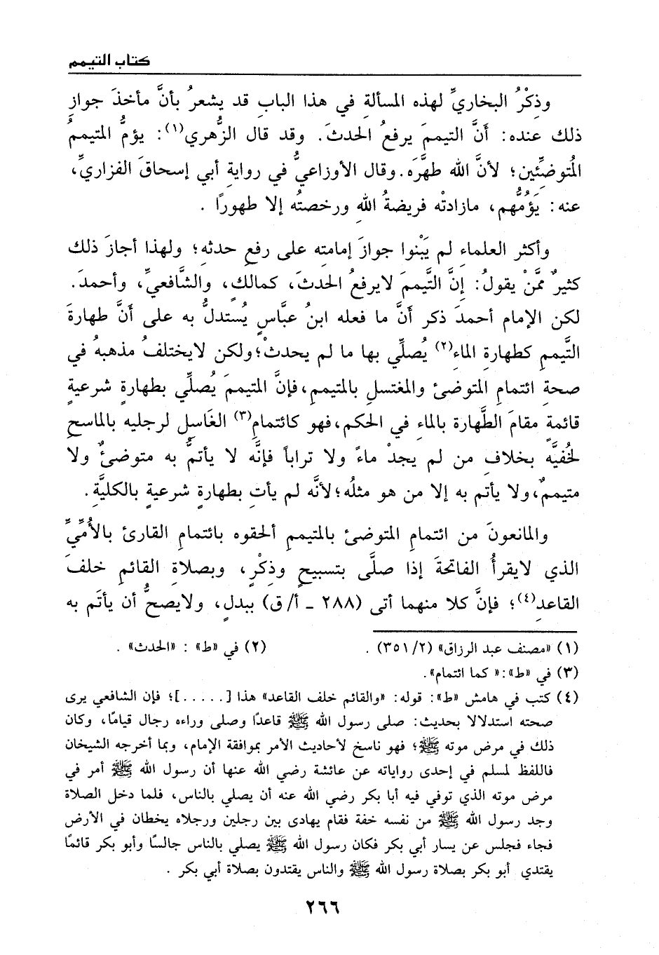 وأكثر العلماء لم يبنوا جواز إمامته على رفع حدثه، ولهذا أجاز ذلك كثير ممن يقول: أن التيمم لا يرفع الحدث كمالك والشافعي وأحمد، لكن الإمام أحمد ذكر أن ما فعله ابن عباس يستدل به على أن طهارة التيمم كطهارة الماء يصلي بها ما لم يحدث. ولكن يختلف مذهبه في صحة ائتمام المتوضئ والمغتسل بالتيمم؛ فإن المتيمم يصلي بطهارة شرعية قائمة مقام الطهارة بالماء في الحكم، فهو كائتمام الغاسل لرجليه بالماسح لخفيه، بخلاف من لم يجد ماء ولا ترابا فإنه لا يأتم به متوضئ ولا متيمم، ولا يأتم به إلا من هو مثله؛ لأنه لم يأت بطهارة شرعية بالكلية.