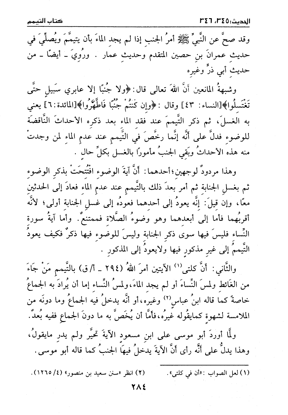 ولما أورد أبو موسى على ابن مسعود الآية تحير ولم يدر ما يقول، وهذا يدل على أنه رأى أن الآية يدخل فيها الجنب كما قاله أبو موسى.